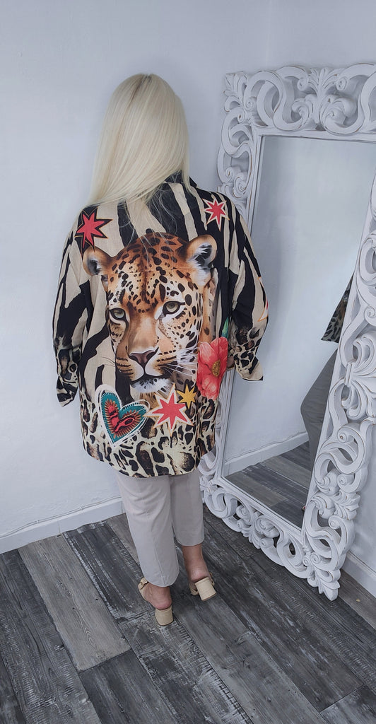 All Over Abstract Pattern - Stars, Hearts, Cheetah Face With Golden embellishments