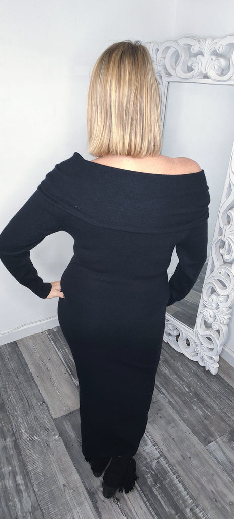 Lux Long Sleeve Cosy Woollen Off The Shoulder Dress