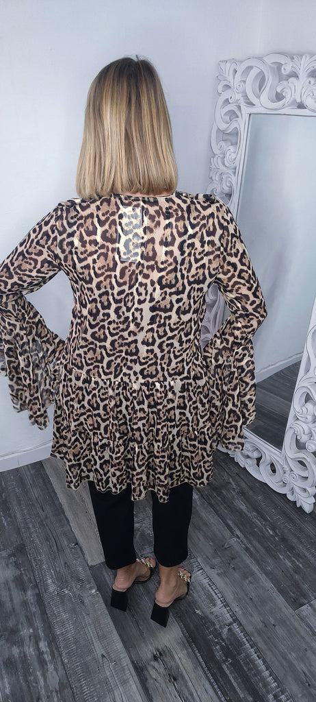 Animal Print (Leopard) Sheer Material With Silver Shimmer Thread - And Adjustable Strap Camisole Top