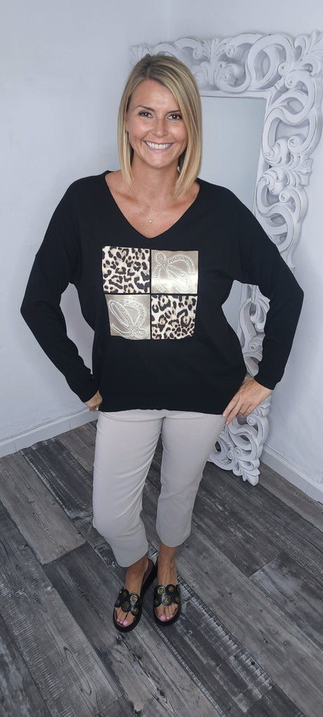 Centre Of Jumper Enriched Satin Finish Square Animal Print And Bling In 4 Cubes