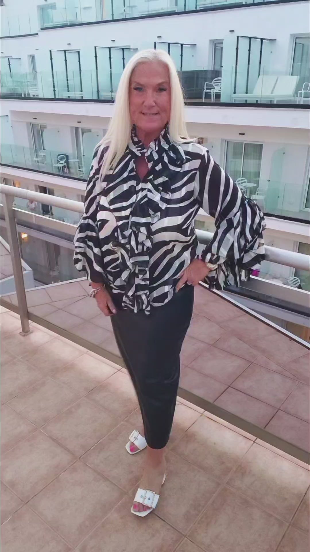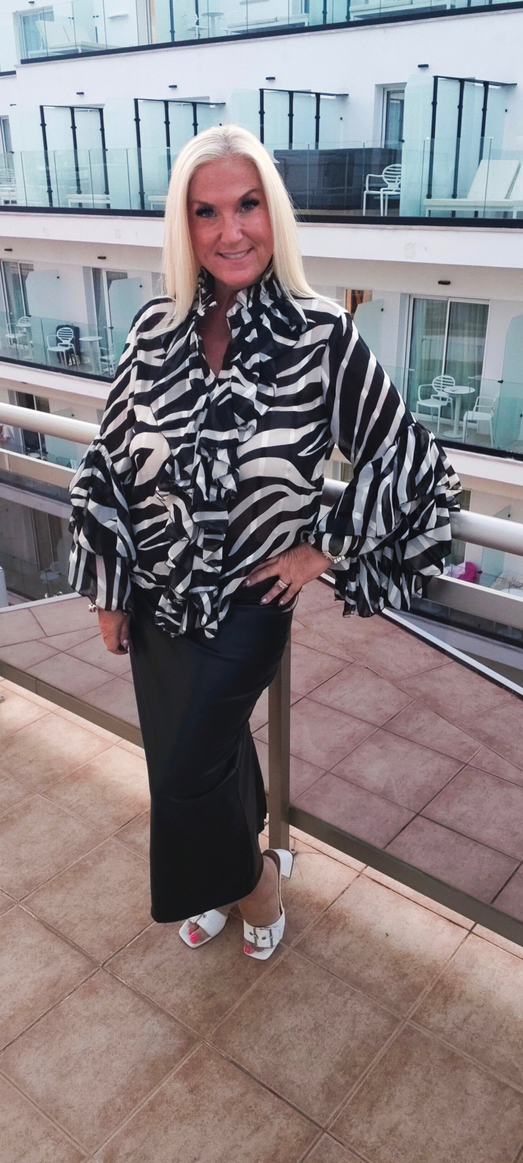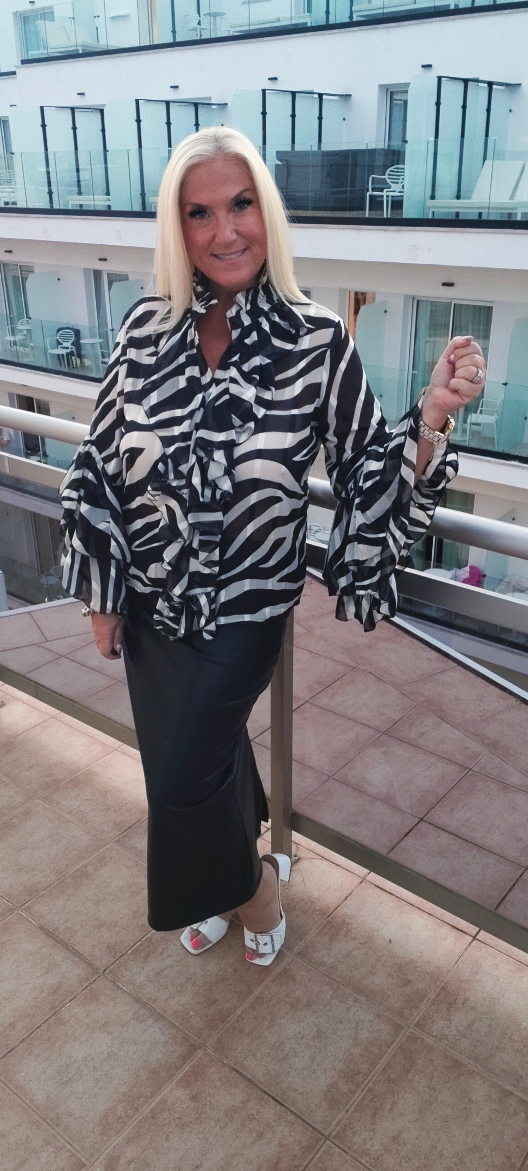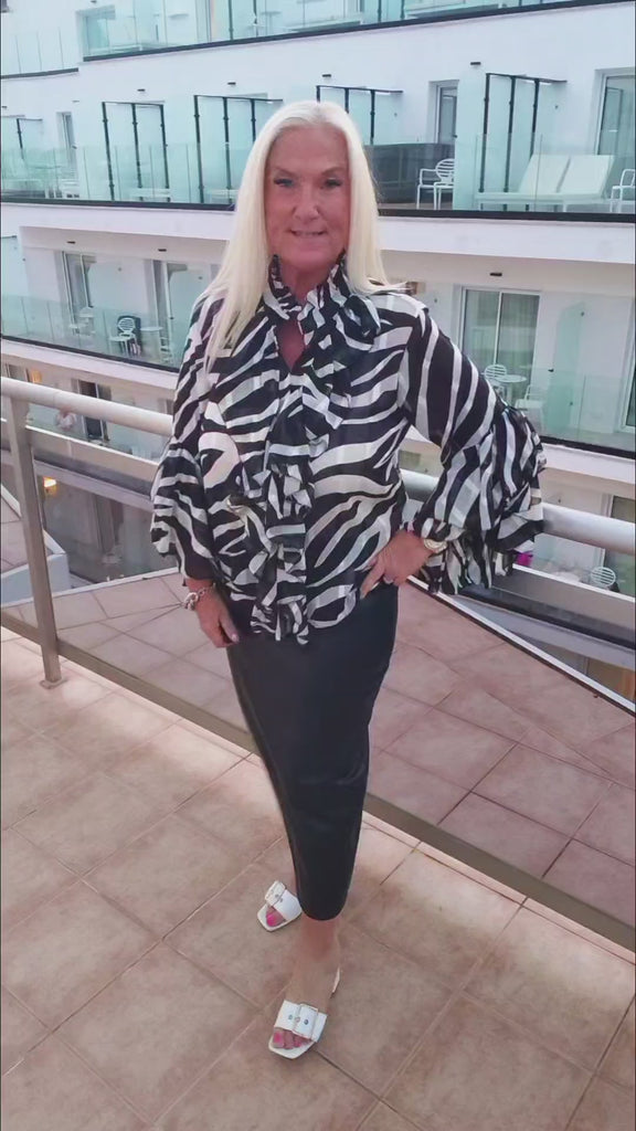 Vibe Zebra Print Sheer Ruffle Blouse