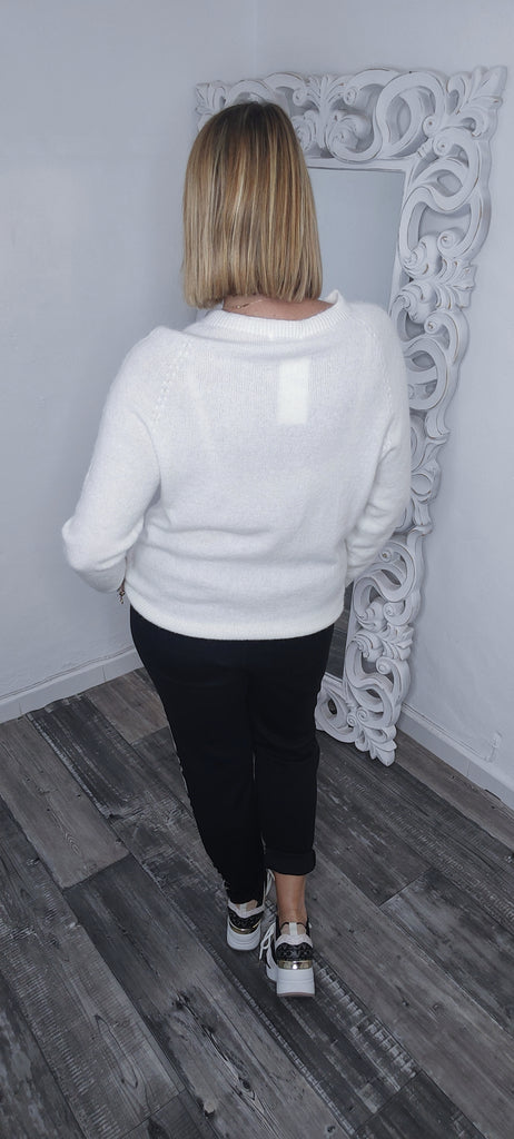 Centre Of Jumper Enriched With Sparkling No 5 And Text In Bling Studs