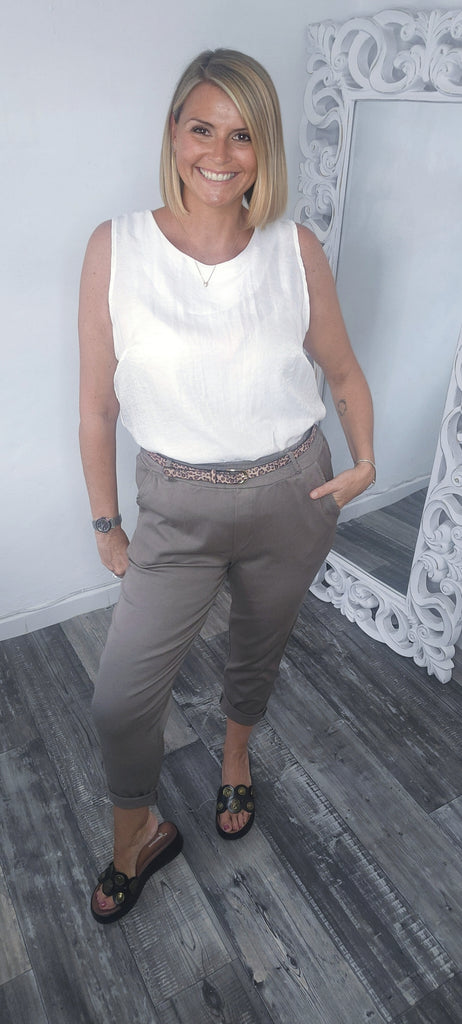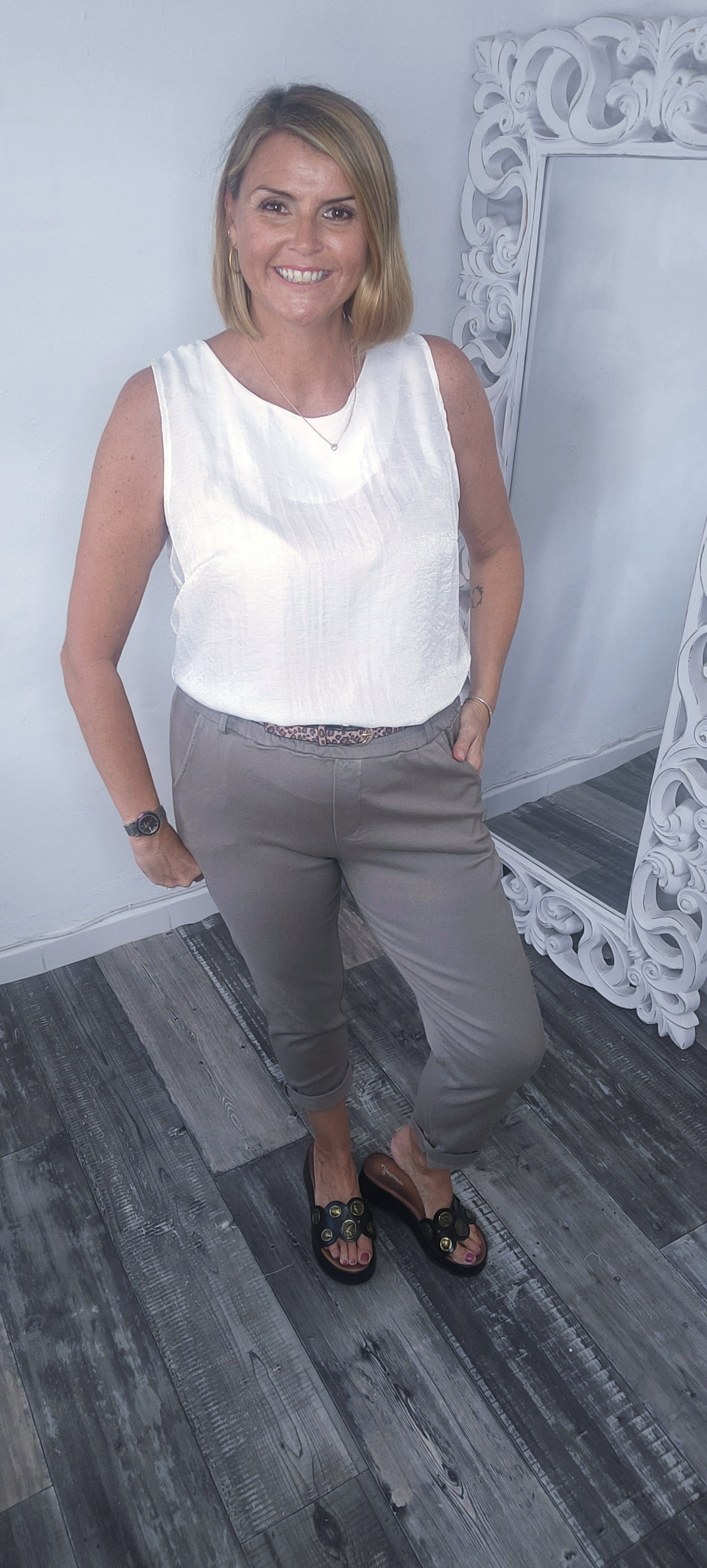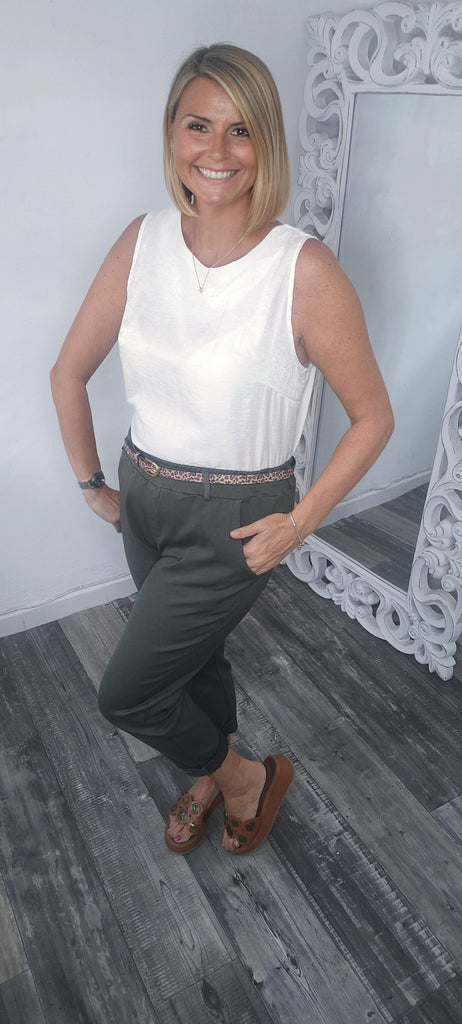 Elasticated Waist With Animal Print Slender Belt And Gold Buckle